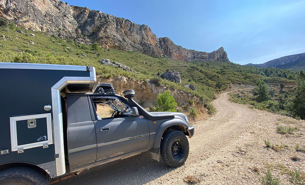 Depuis Roquetes où débute le road book, les montagnes en toile de fond vers lesquelles nous roulons, sont prometteuses de beaux paysages. Ce sera le cas et, nous serons agréablement dépaysés jusqu’à la fin de ce parcours. Du moment où nous entrerons dans le massif du Puerto de Beseit et prendrons la piste, nous aurons l’impression de ne plus la quitter. Pourtant, comme toujours il y aura des portions de goudron, inévitables pour franchir une vallée, traverser un village, mais la sensation qui restera, sera d’avoir totalement quitté la civilisation durant les journées passées à dessiner ce road book. Nous avons laissé la Catalogne, découverte dans les deux premiers tomes de Sierras et Méditerranée et entrons dans la Communidad de Valencia. Nous aurons sur cette traversée une étonnante variété de paysages et d’ambiances. Parfois au Maroc dans des remontées d’oueds bordés de lauriers roses, parfois en Mongolie sur des steppes arides et rocailleuses, parfois en Provence sur des pistes blanches de poussière sous les pins parasols et le ciel bleu, parfois nulle part, comme dans la Rambla de Cellumbres avec ses vallons recouverts de murets de pierre, en fait en Espagne… avec toute la diversité qu’elle offre aux randonneurs. Et toujours dans une solitude totale sur ces pistes peu fréquentées, pourtant en permanence à une cinquantaine de kilomètres de la côte méditerranéenne. Bien agréable d’aller faire une petite escapade rafraîchissante vers les plages et goûter à la gastronomie locale à la table d’un restaurant de bord de mer. Notons aussi que ce parcours propose plusieurs possibilités de baignades avec des lacs et des rivières.