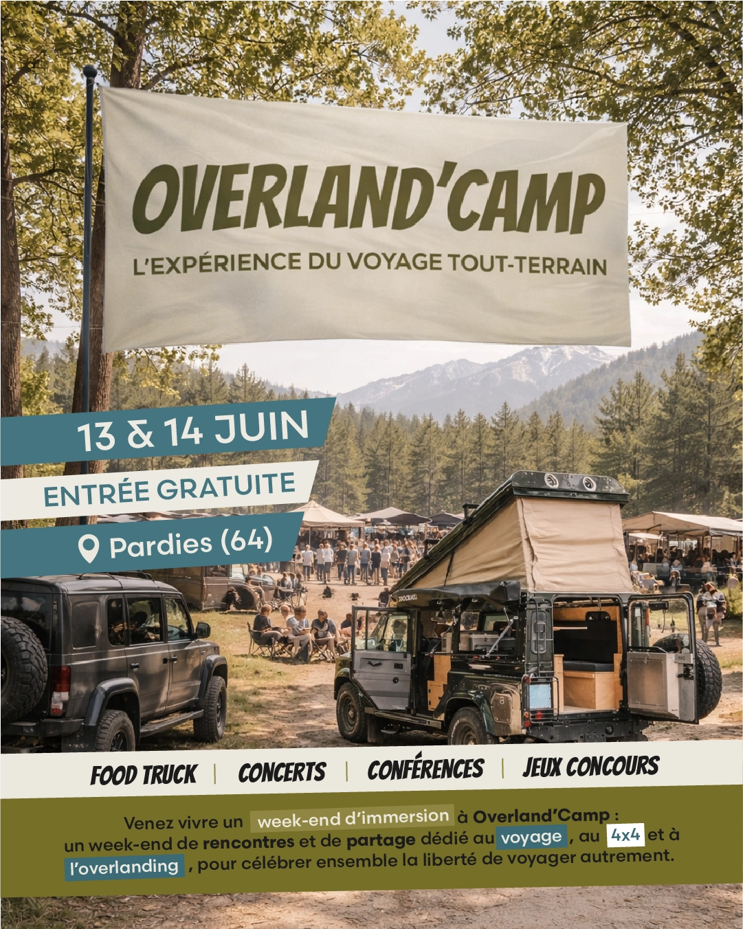 Pour prolonger l’expérience de l’Overland’Camp et la vivre pleinement, nous mettons à disposition un espace bivouac attenant à l’événement, accessible à tous.